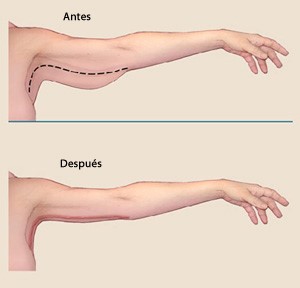 La finalidad de esta intervención es eliminar la grasa y la piel sobrante de los brazos